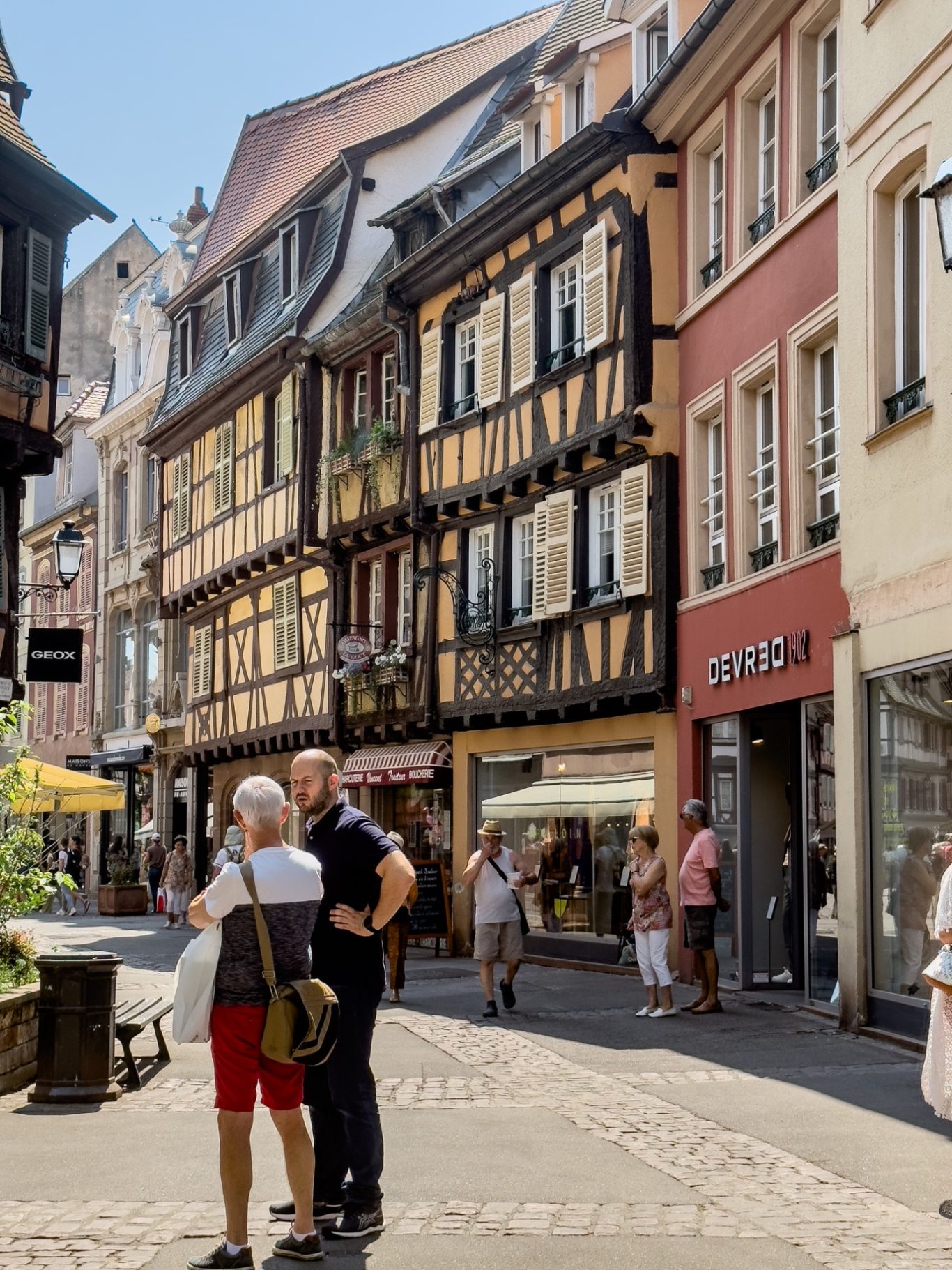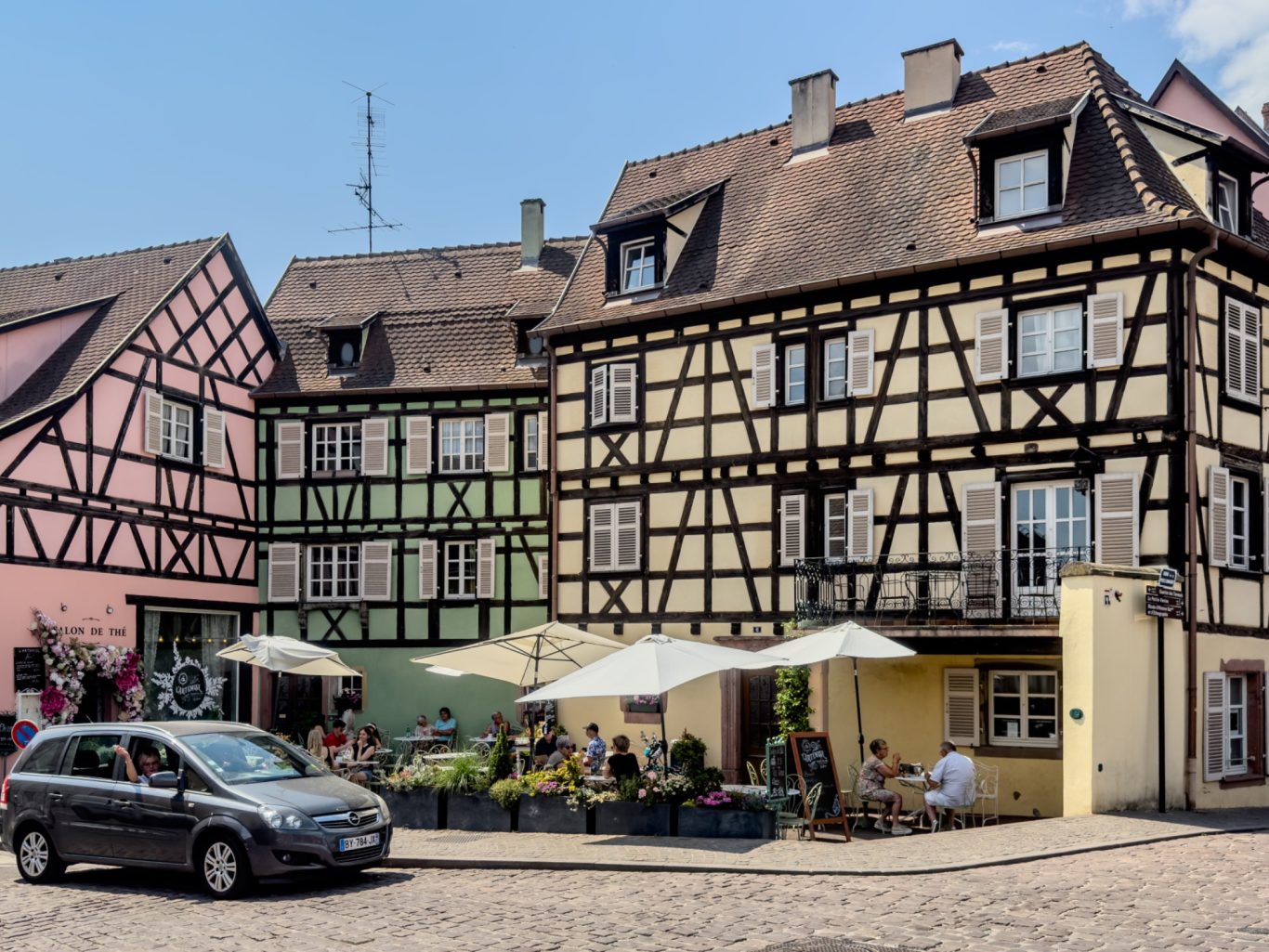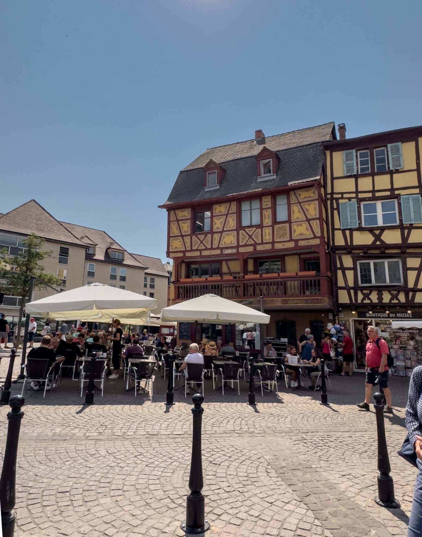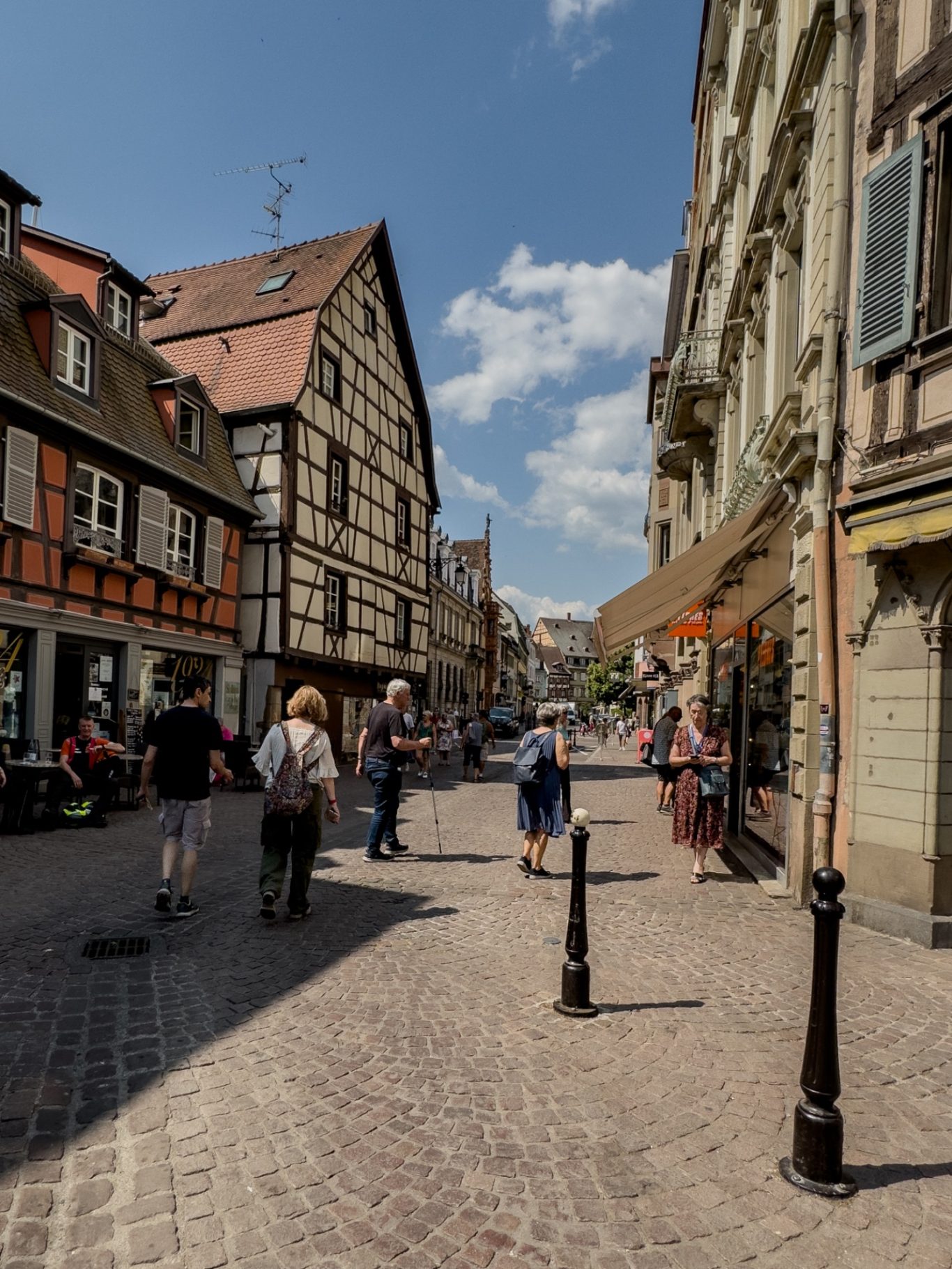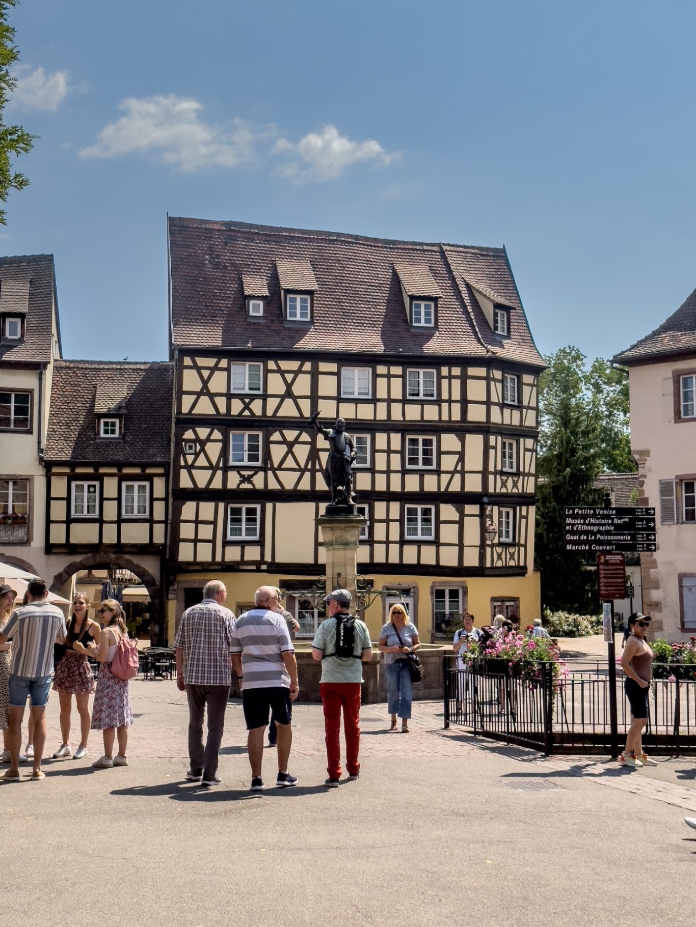 Gut, dass ich das kleine Auto genommen habe. So kann ich bequem in die Stadt und in eines der Parkhäuser hineinfahren. Ich komme aus dem Parkhaus, stehe auf einem Platz und wow! Colmar ist traumhaft schön.