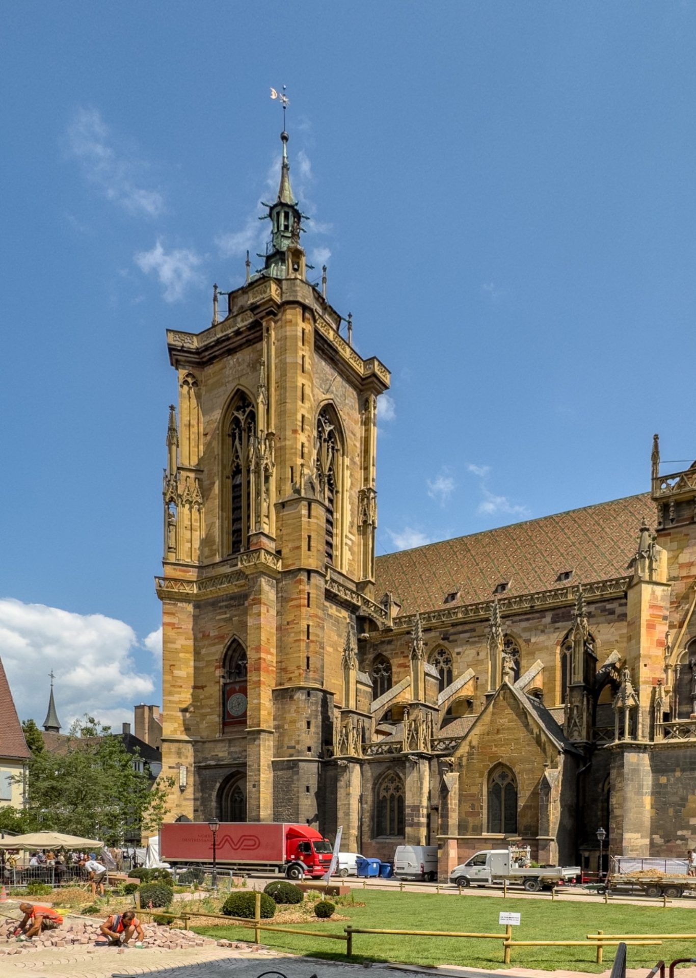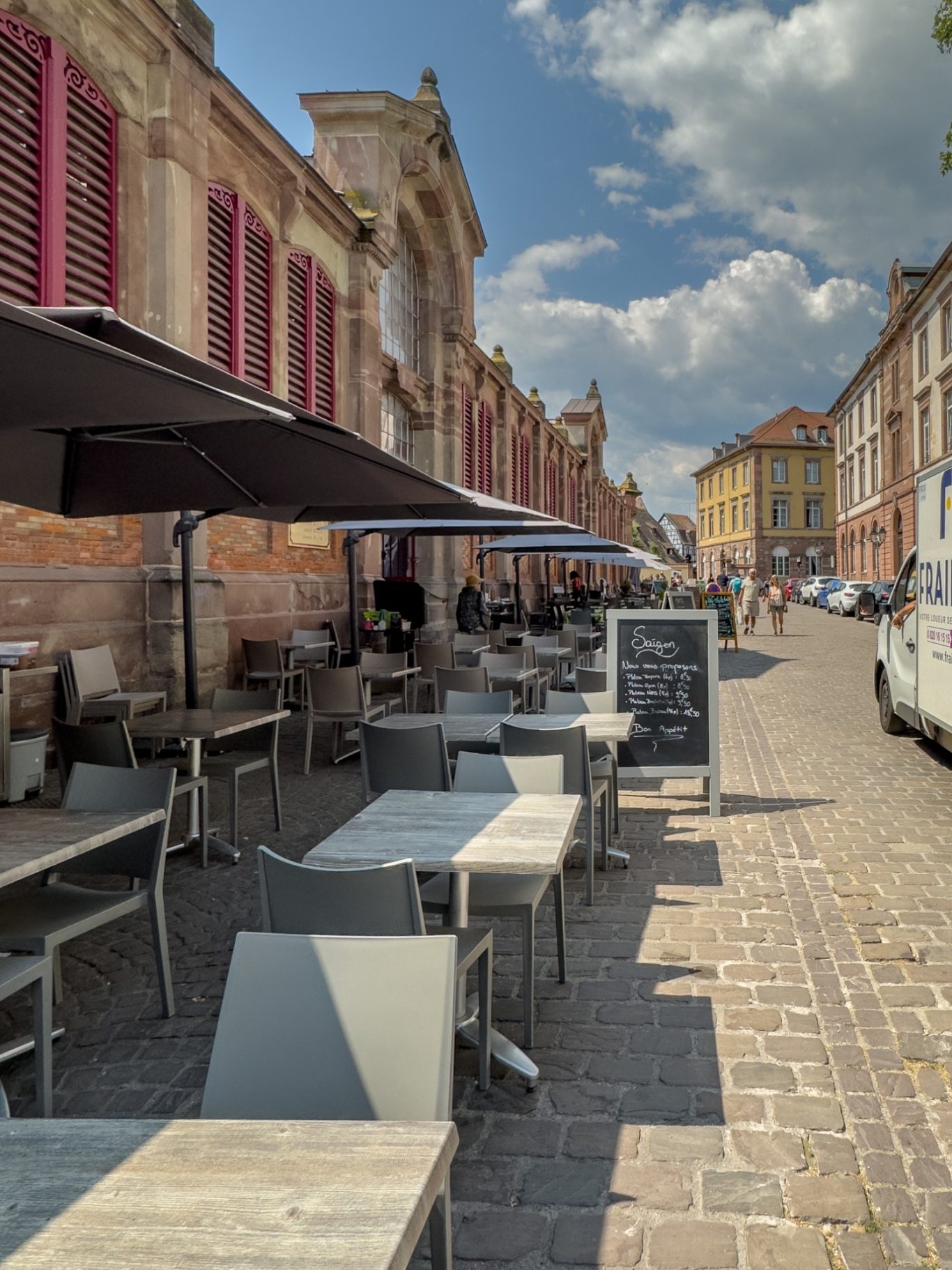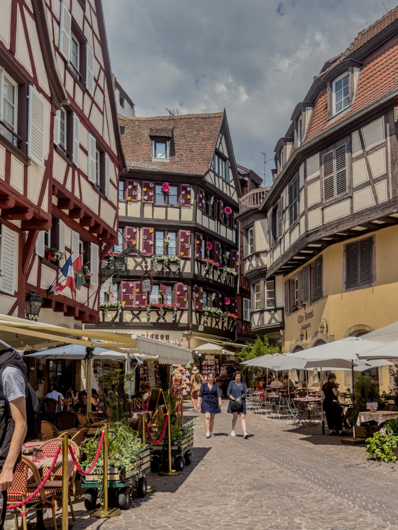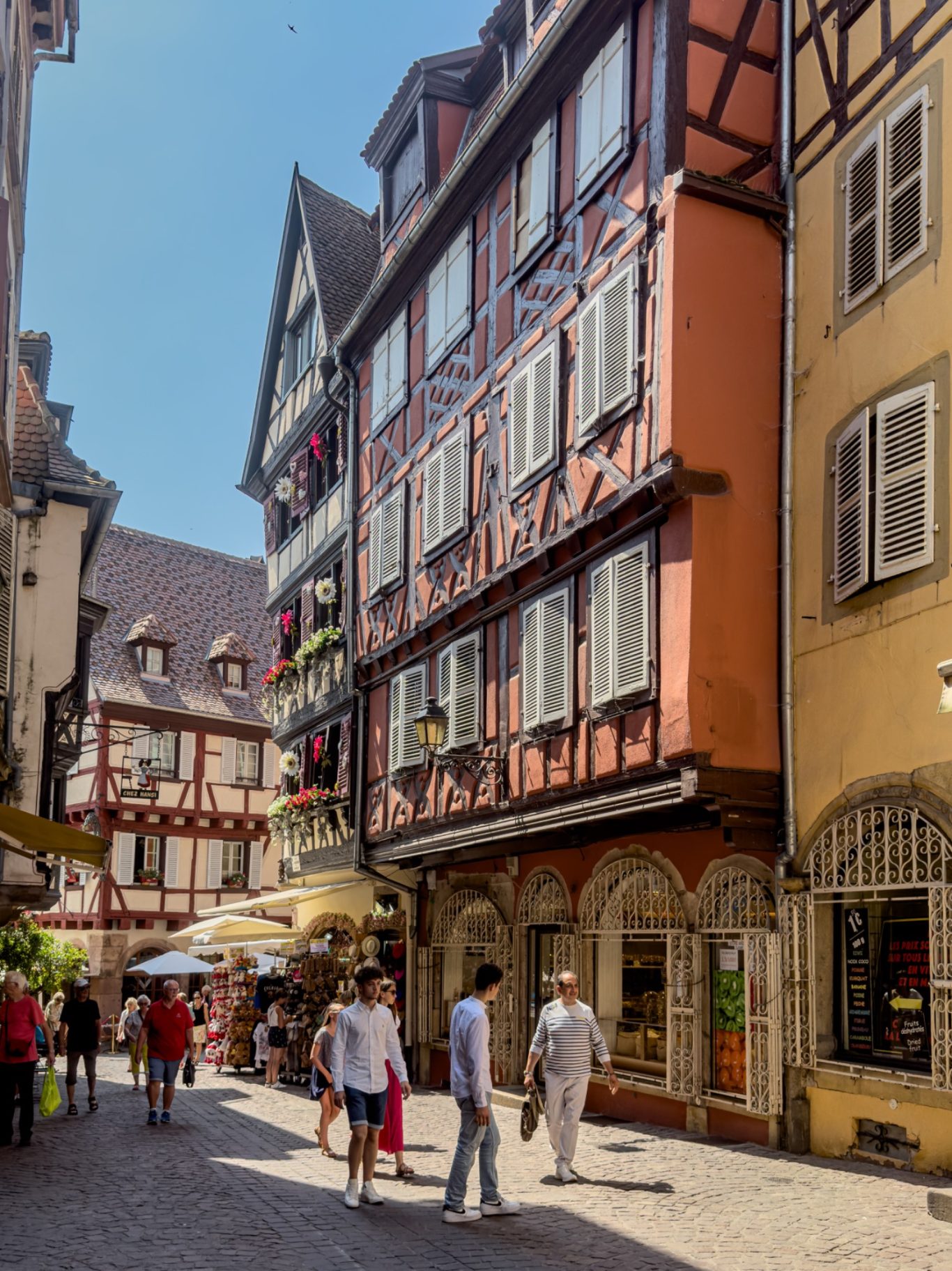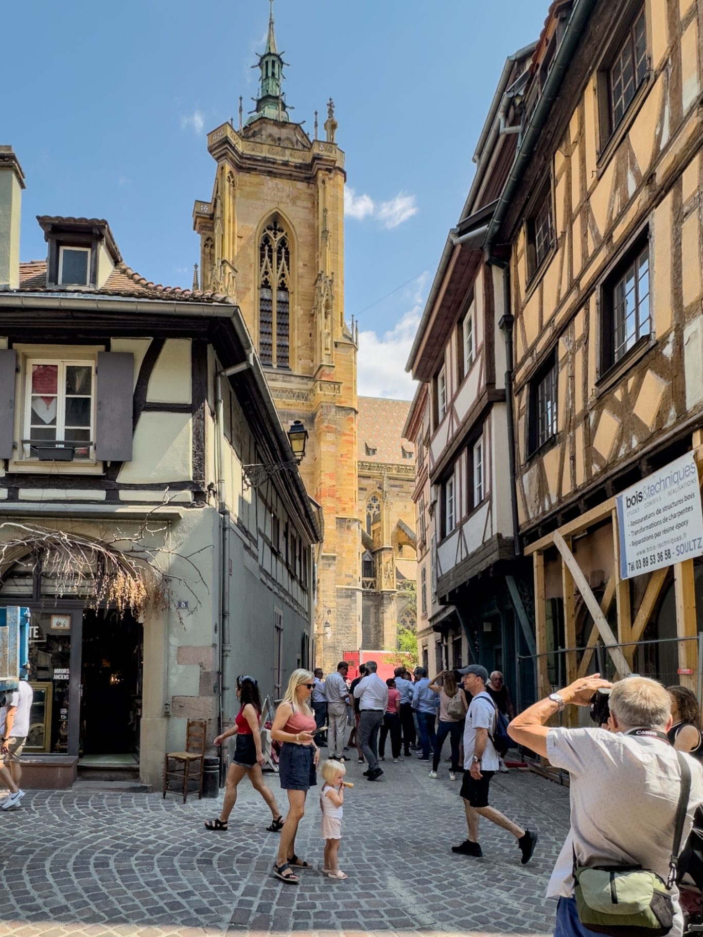 Gut, dass ich das kleine Auto genommen habe. So kann ich bequem in die Stadt und in eines der Parkhäuser hineinfahren. Ich komme aus dem Parkhaus, stehe auf einem Platz und wow! Colmar ist traumhaft schön.