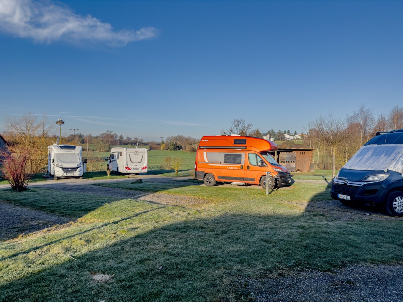 Die Alte Brennerei hat nicht nur eine Brennerei, sondern auch ein Wirtshaus und einen Wohnmobilstellplatz hinterm Haus, wo man für 14 Euro (plus 1 Euro für Zoe) stehen kann. Strom kostet extra, wird von uns aber nicht benötigt.