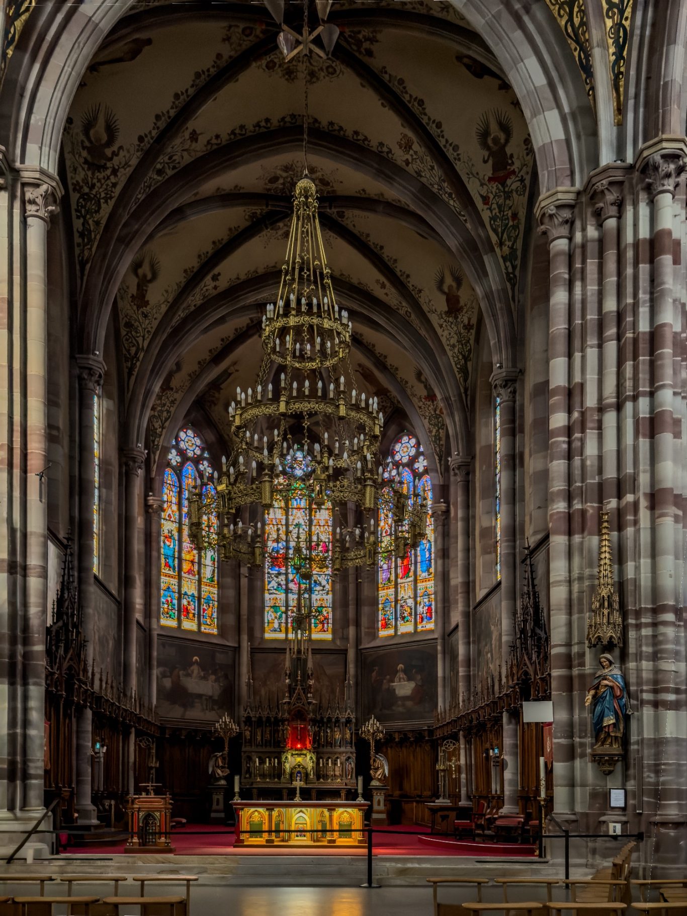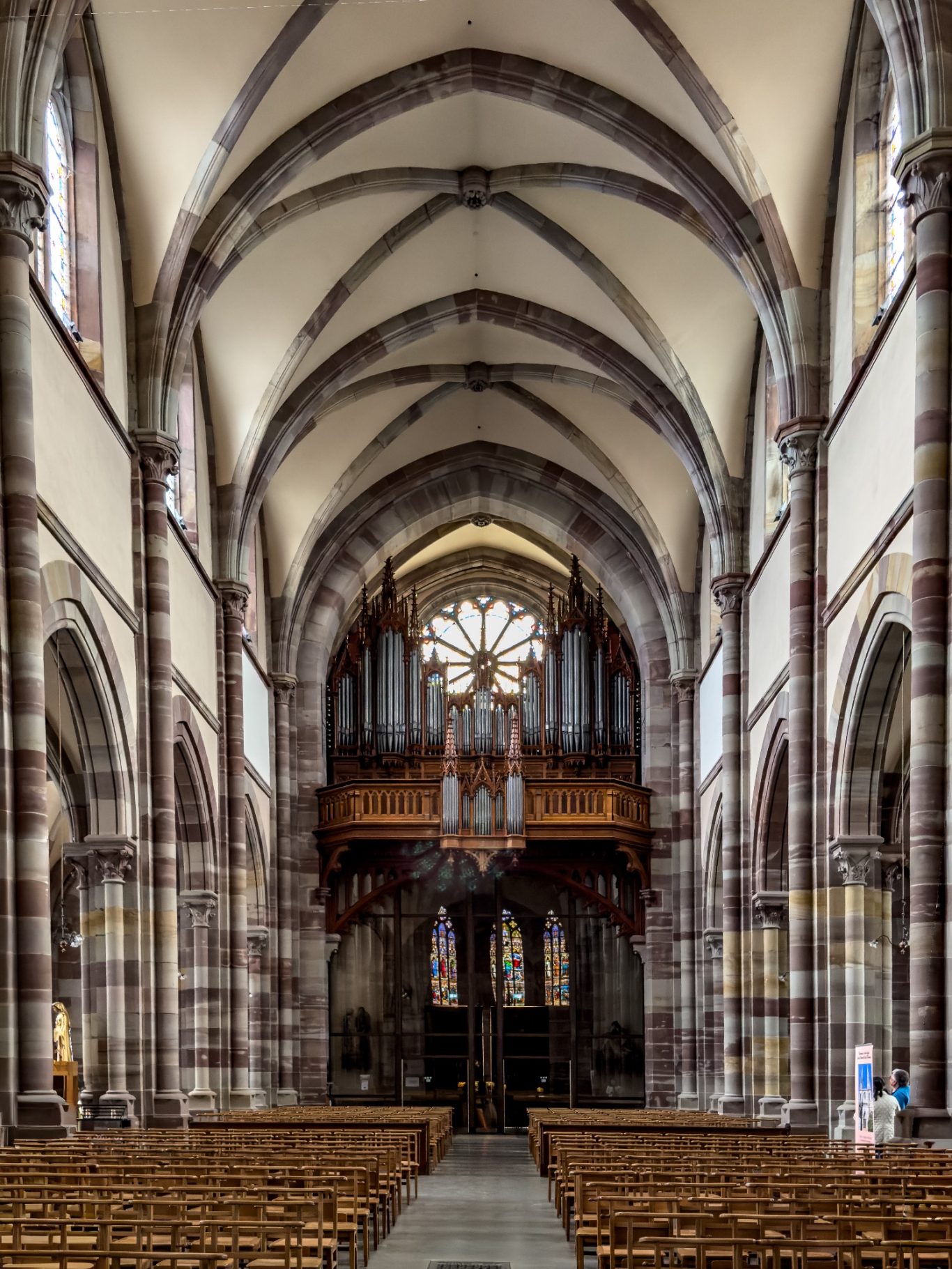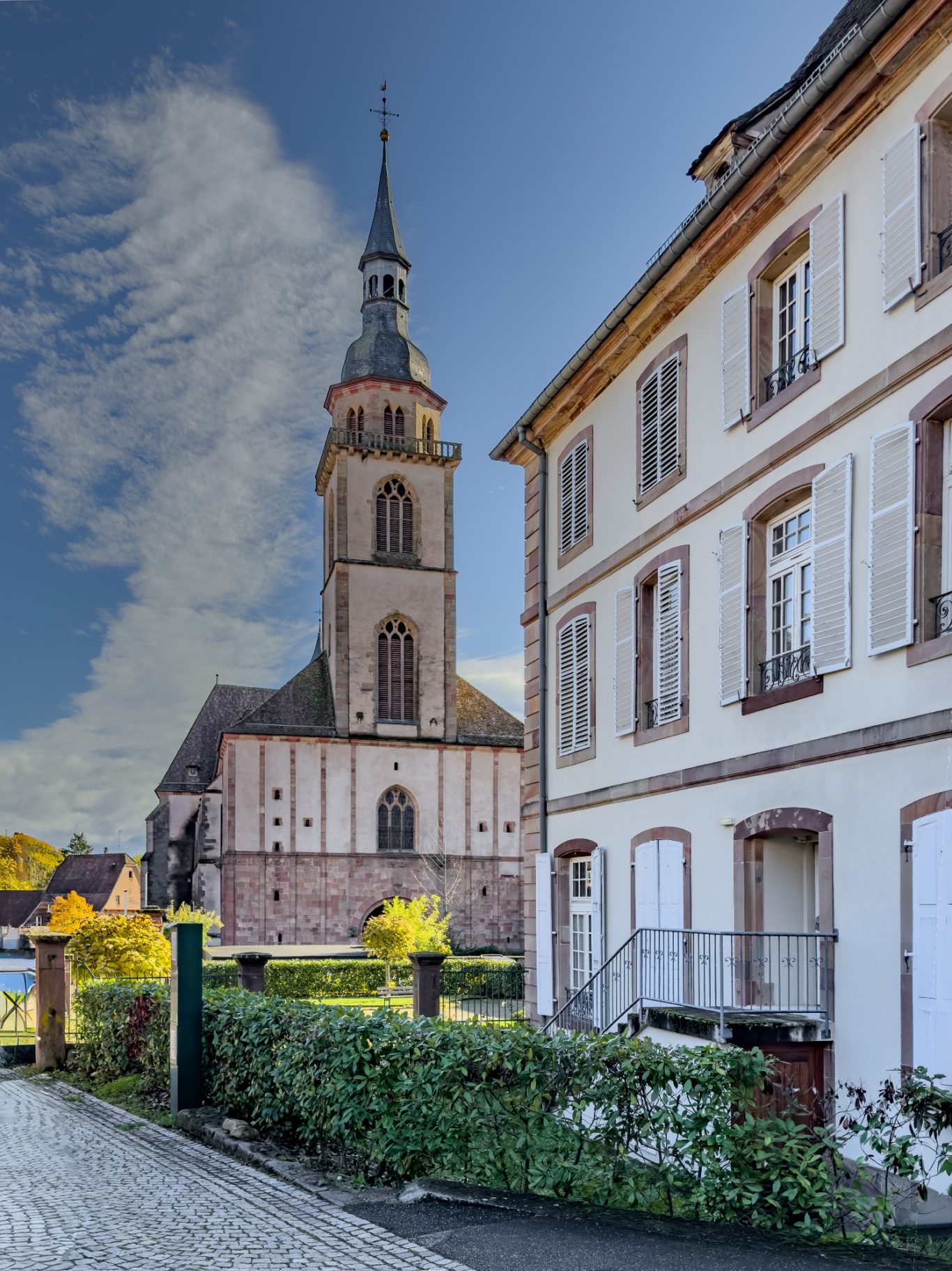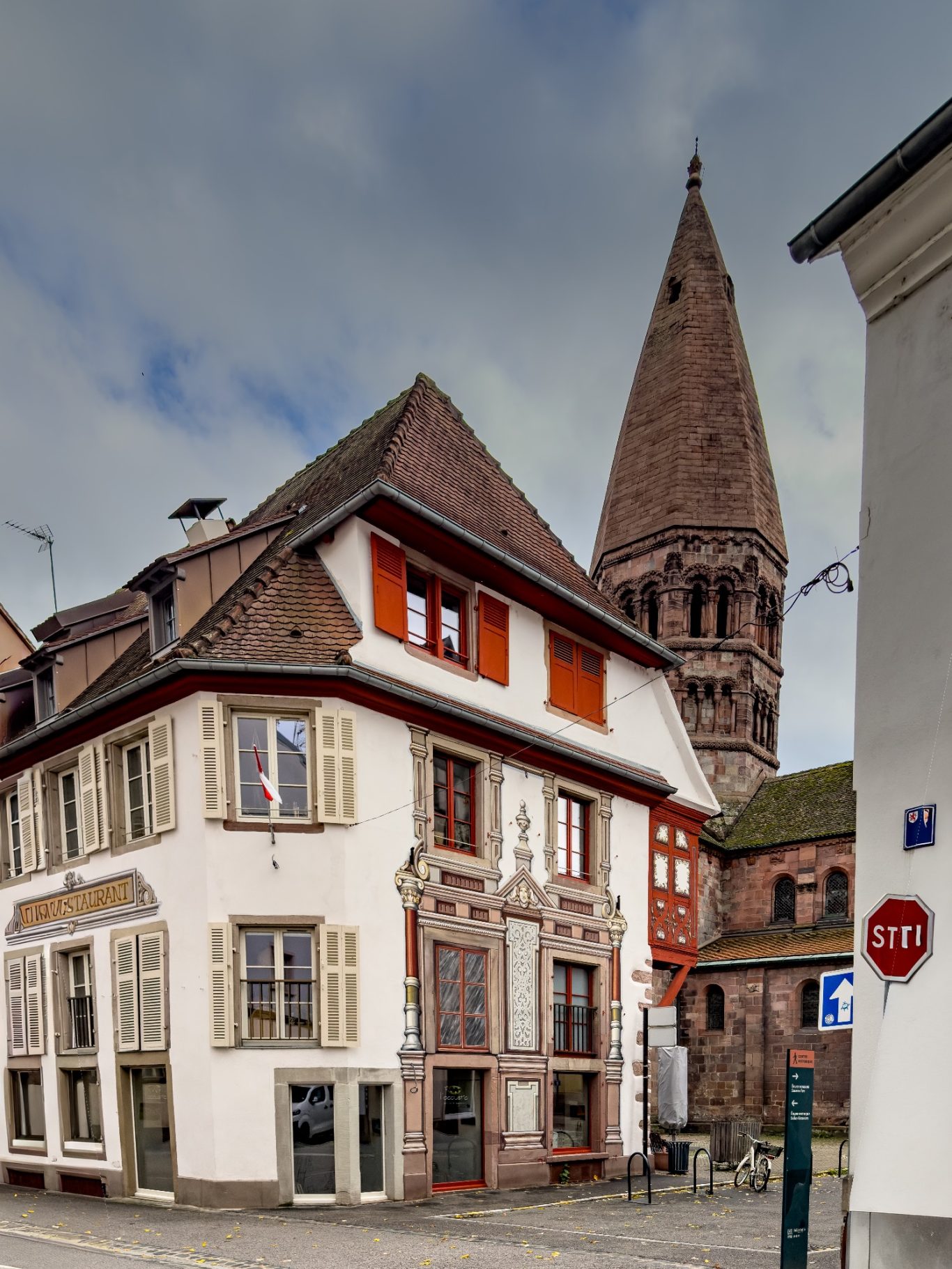 Das gegenwärtig sichtbare Kirchengebäude wurde 1170 bis 1180 mit von Friedrich Barbarossa gestifteten Geldern errichtet und zeichnet sich durch seine stilistische Einheitlichkeit und ausgewogenen Proportionen aus. Der romanische Stil mit seinen quadratischen Elementen und seiner Einfachheit ist gut zu erkennen. Die Kirche wurde aus rotem Sandstein und Granit der Vogesen erbaut. Das Querschiff ragt nur wenig über die Breite des Langhauses hinaus.