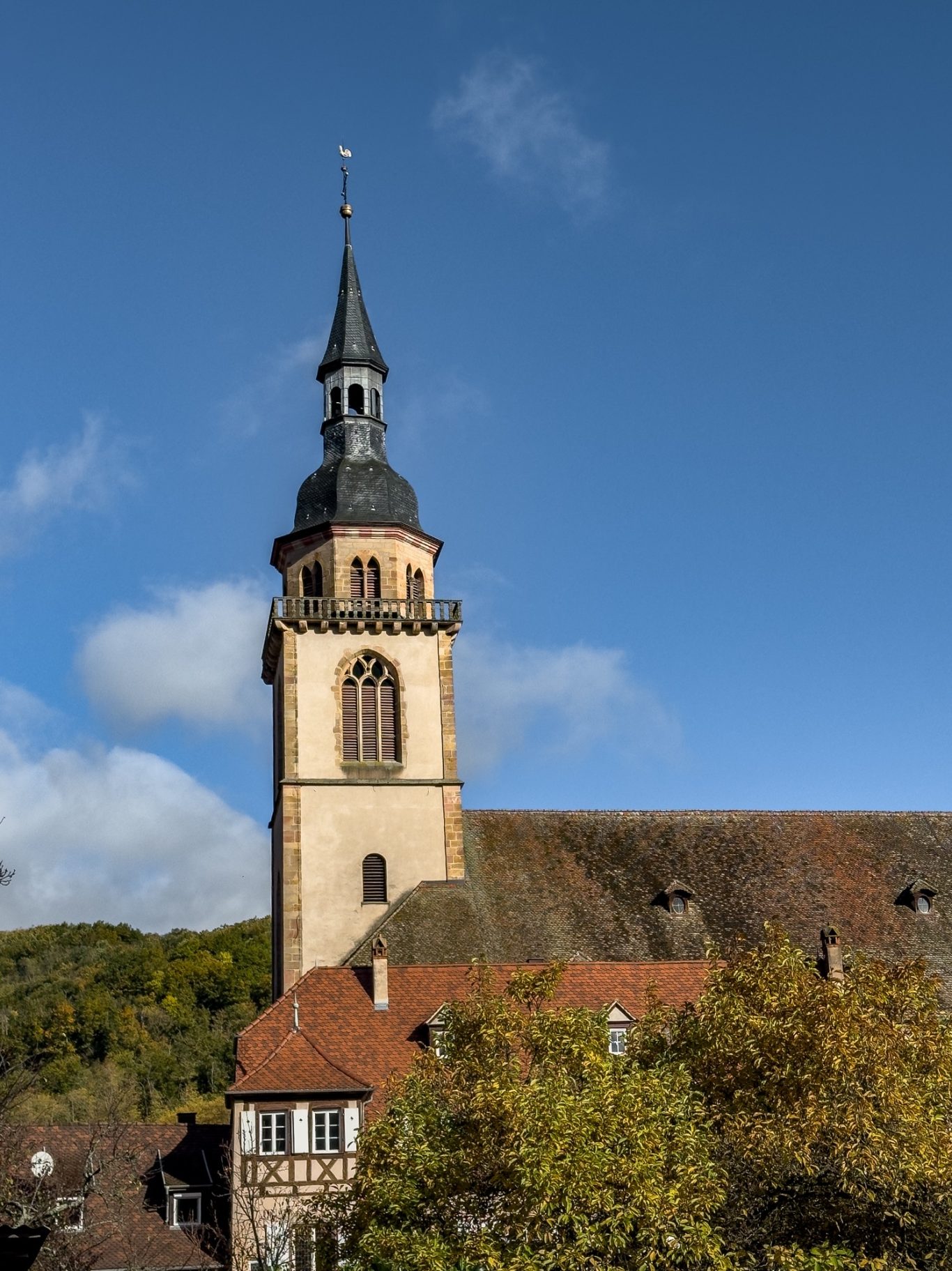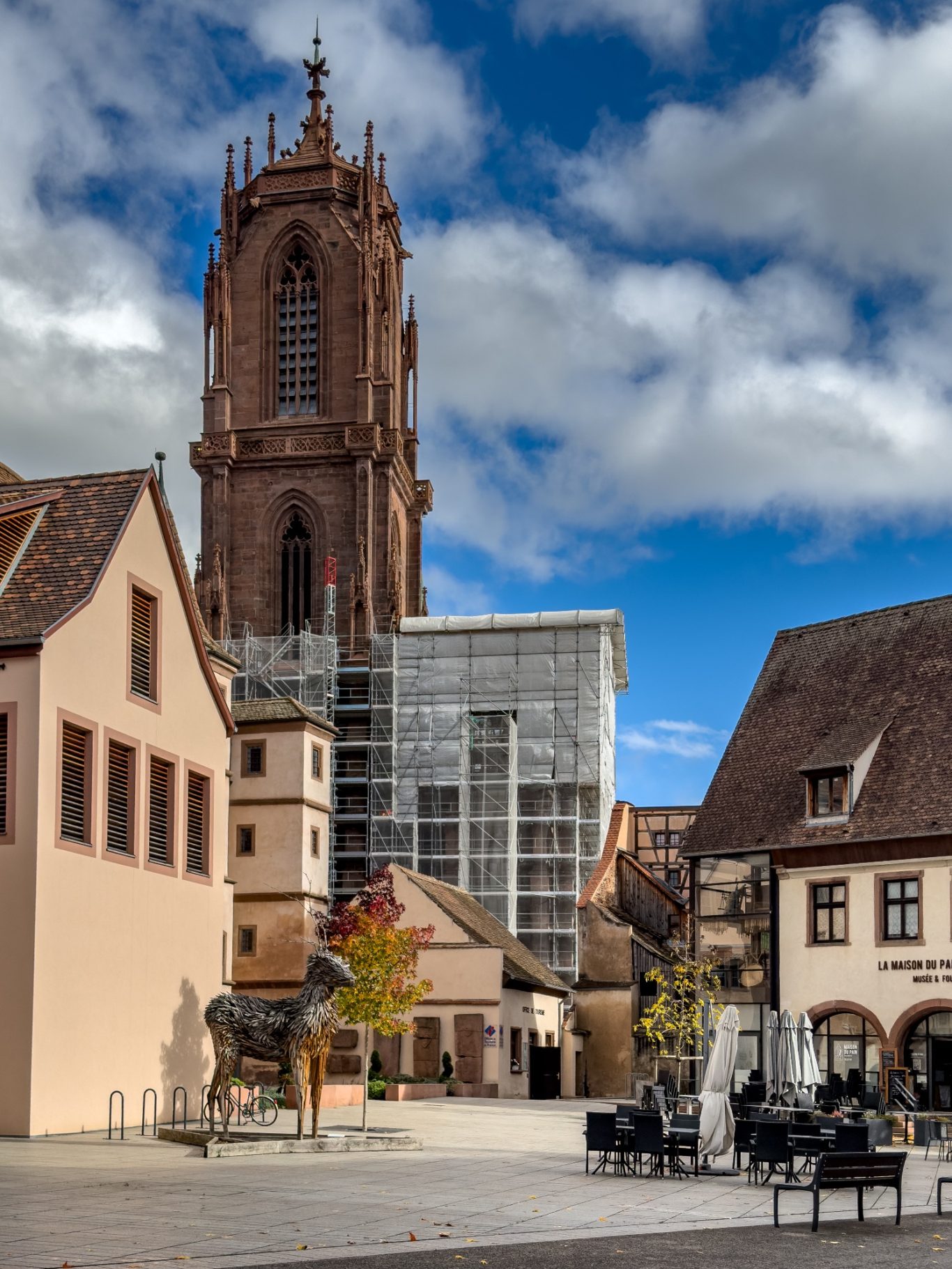 Mit seiner Höhe von 60 Metern ist der gotische Glockenturm der Kirche Saint-Georges de Sélestat eines der ersten sichtbaren Elemente, wenn man in Sélestat ankommt.