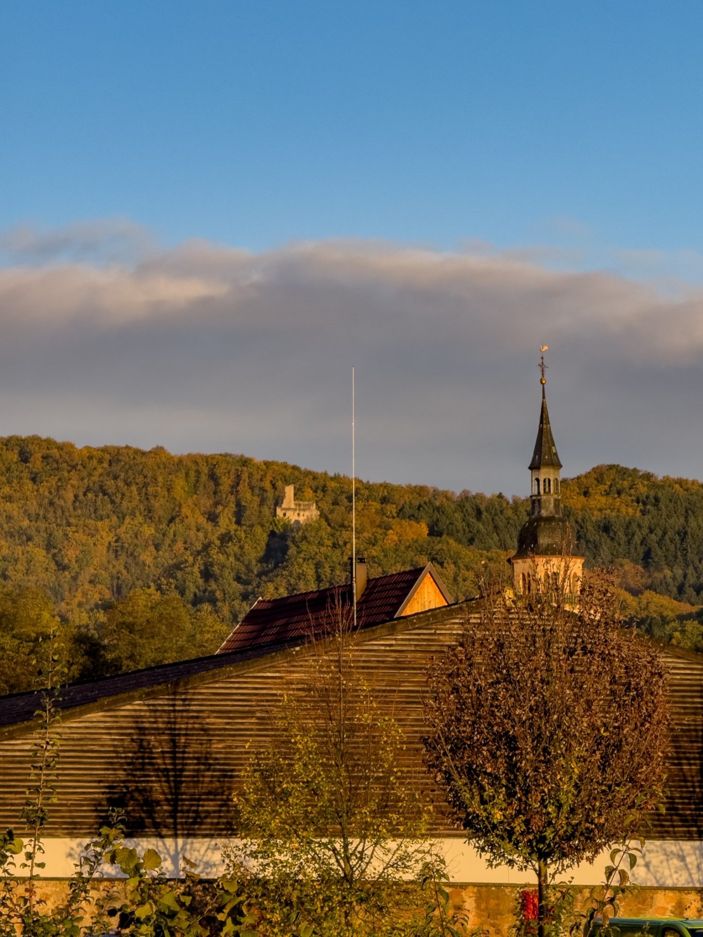 Jan ruft an: Bis zur Nachbarburg ist es nur ein Steinwurf. Die beiden Eroberer ziehen also weiter zur Burgruine Ortenberg.