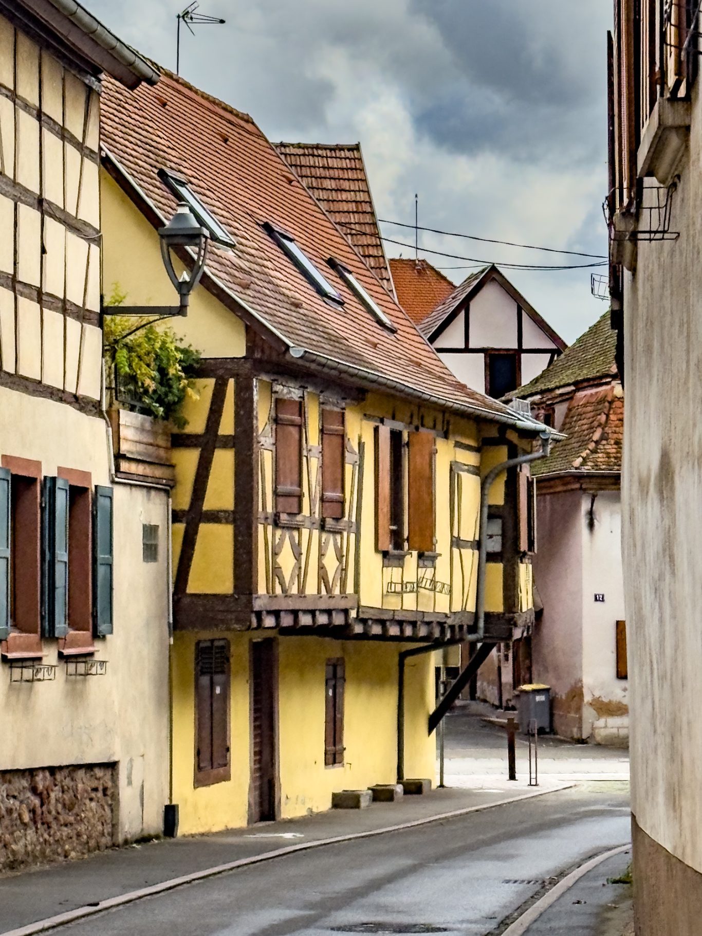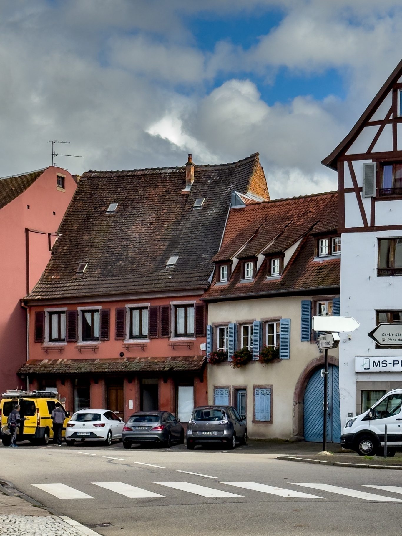 Aber vordringlichstes Problem: Wir müssen zum Einkaufen. Der nächste E.Leclerc ist ist nicht weit in Sélestat, also los. Der Himmel reisst auf und wir bekommen herrlichen Sonnenschein, der Wind bleibt.