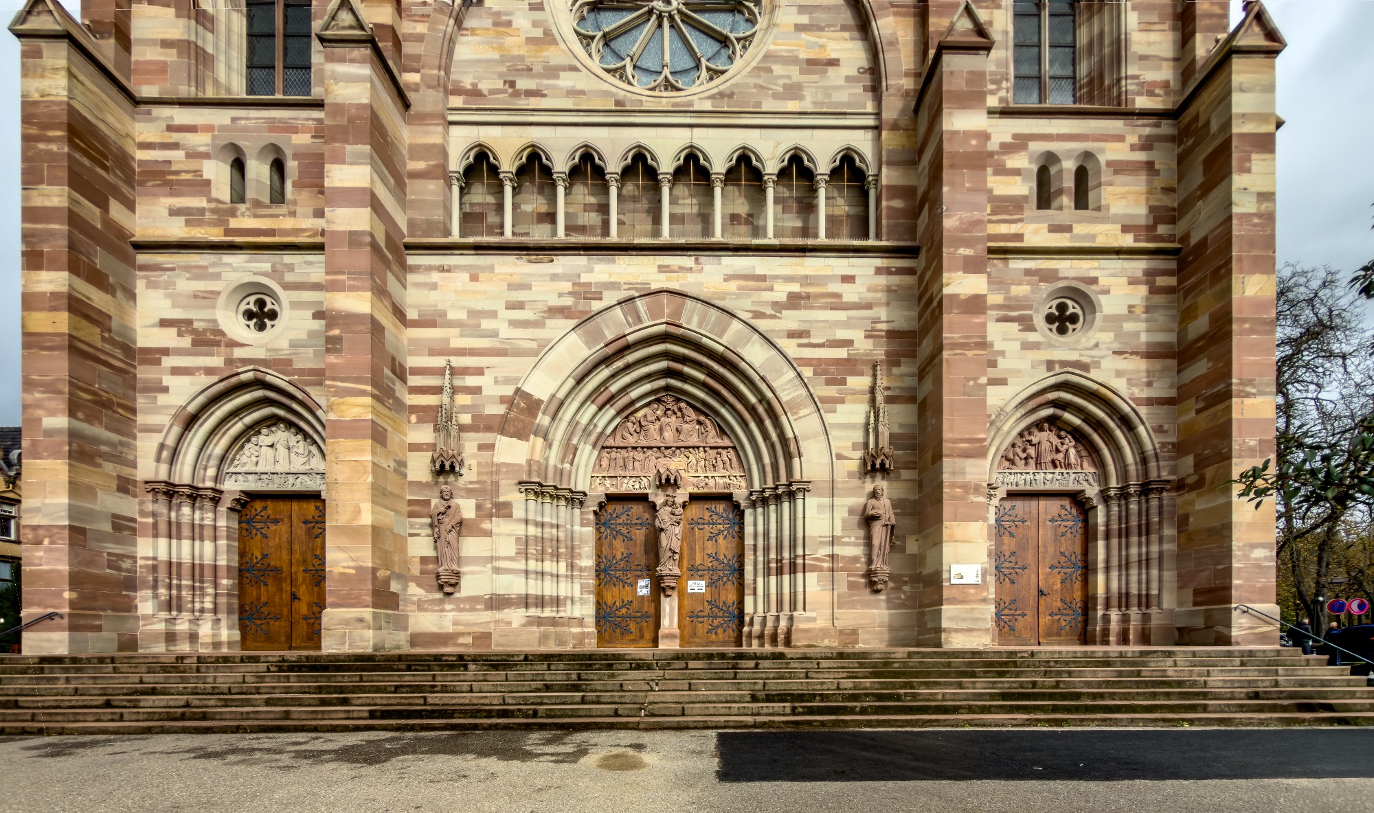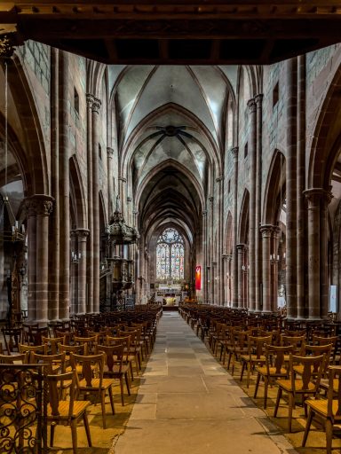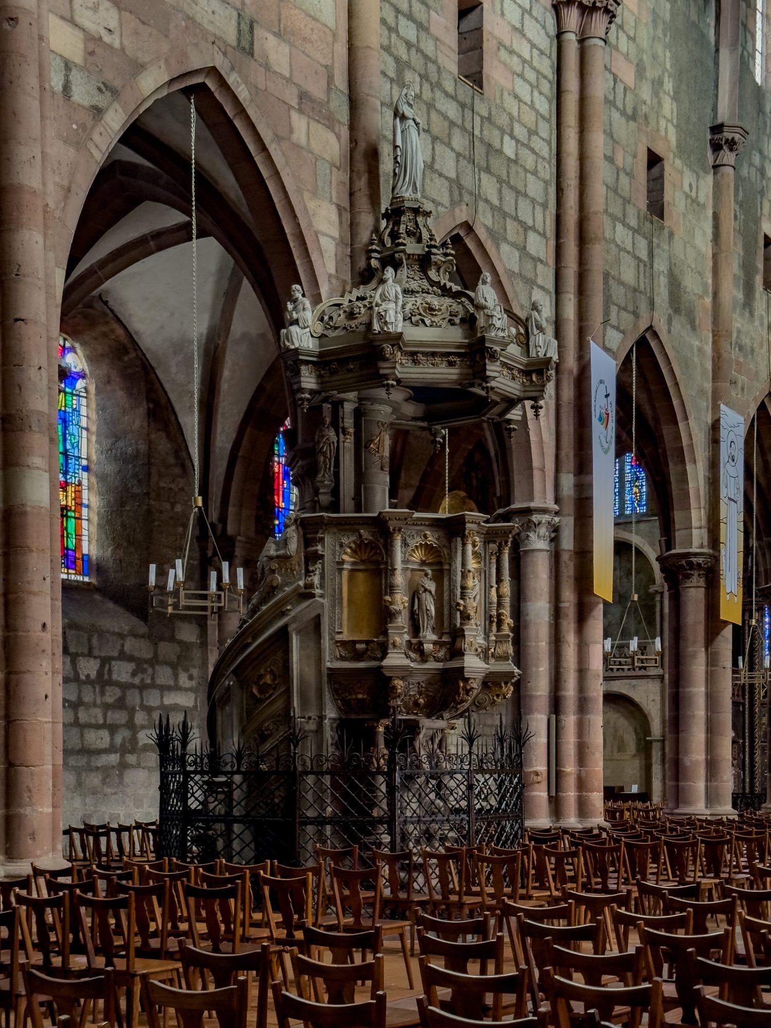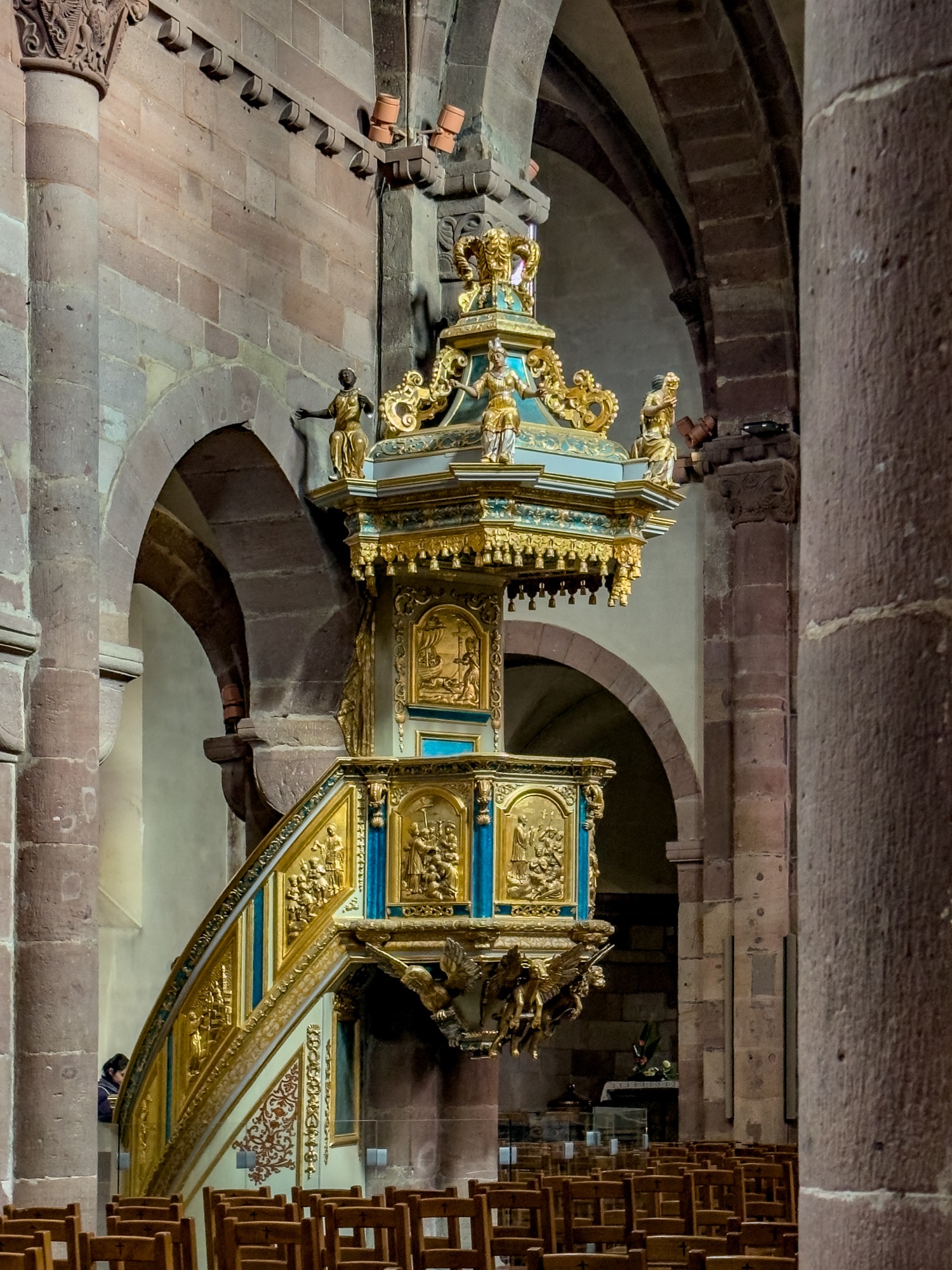 Das gegenwärtig sichtbare Kirchengebäude wurde 1170 bis 1180 mit von Friedrich Barbarossa gestifteten Geldern errichtet und zeichnet sich durch seine stilistische Einheitlichkeit und ausgewogenen Proportionen aus. Der romanische Stil mit seinen quadratischen Elementen und seiner Einfachheit ist gut zu erkennen. Die Kirche wurde aus rotem Sandstein und Granit der Vogesen erbaut. Das Querschiff ragt nur wenig über die Breite des Langhauses hinaus.