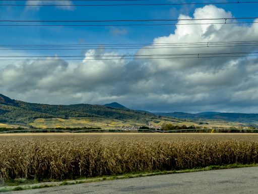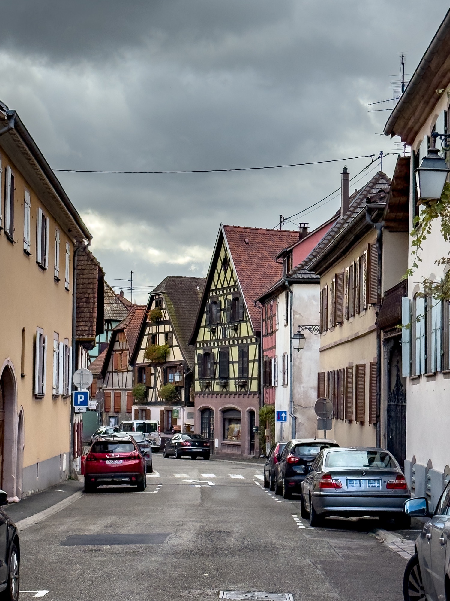 Aber vordringlichstes Problem: Wir müssen zum Einkaufen. Der nächste E.Leclerc ist ist nicht weit in Sélestat, also los. Der Himmel reisst auf und wir bekommen herrlichen Sonnenschein, der Wind bleibt.