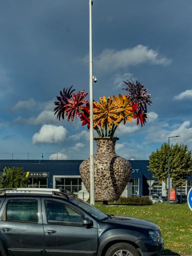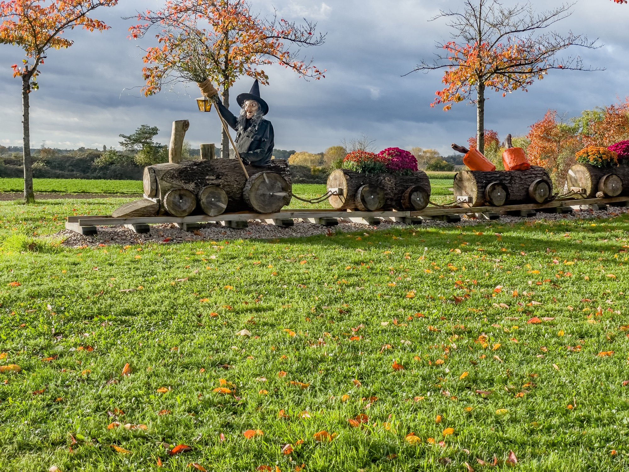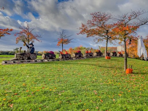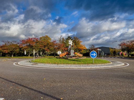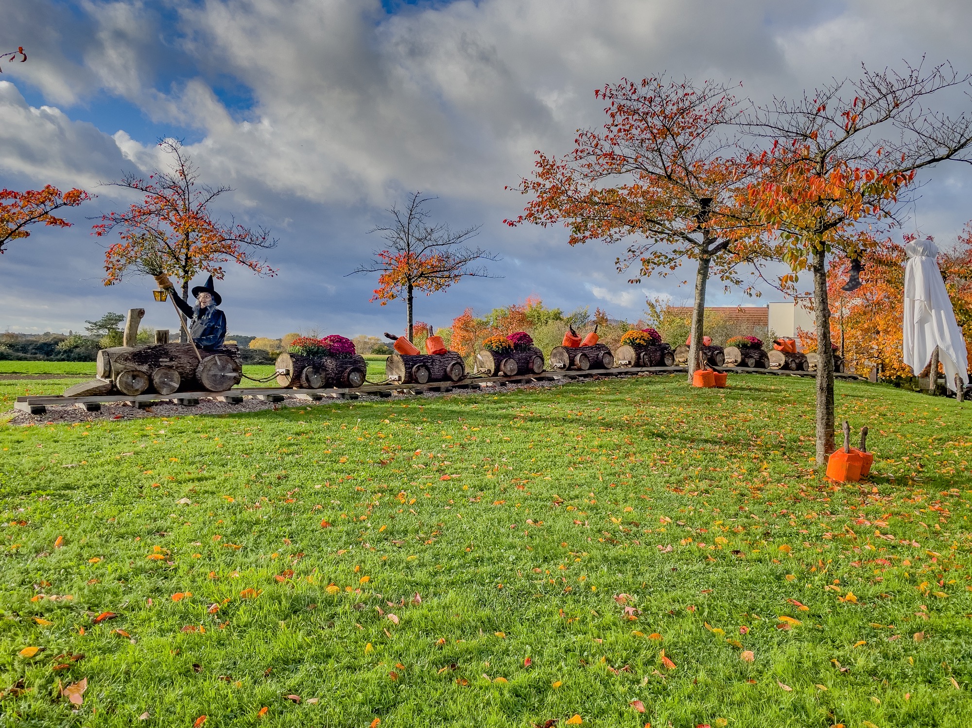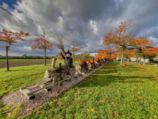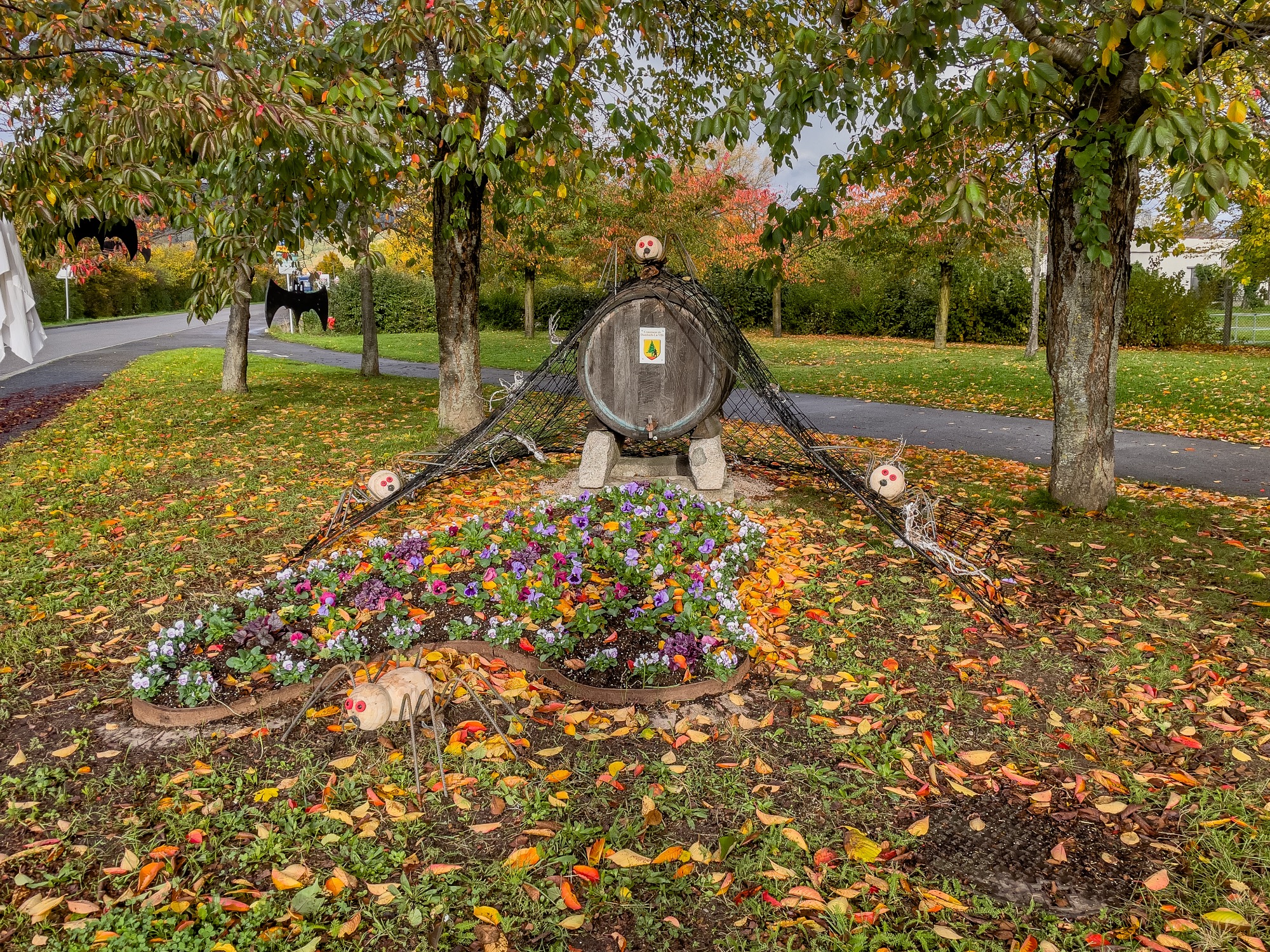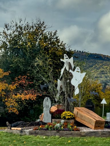 Bei unserer gestrigen Anreise konnten wir beobachten, wie Angestellte der Gemeinde die Kreisverkehre für Halloween dekoriert haben. Heute waren die Arbeiten abgeschlossen.