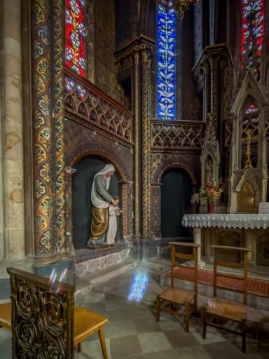Der Bau der Kirche begann in den 1220er Jahren und setzte sich in mehreren Etappen bis ins 15. In dieser Zeit wurde der ursprüngliche Chor durch ein viel größeres Sanktuarium ersetzt, das mit zahlreichen Glasfenstern geschmückt war, von denen 55 noch original erhalten sind.