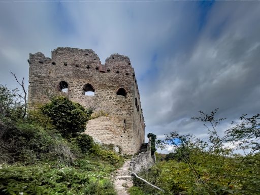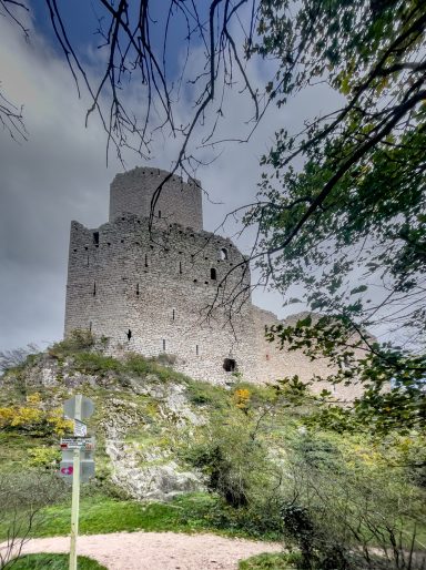 Wir fahren weiter, schließlich stehen noch einige Burgen auf unserem Zettel. So kommen wir zur Burgruine Ramstein. Wir parken und die beiden Jungs beschließen, den Berg zu erklimmen und die Burg zu erobern. Wir Mädels bleiben unten und hüten das Wohnmobil.