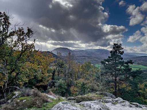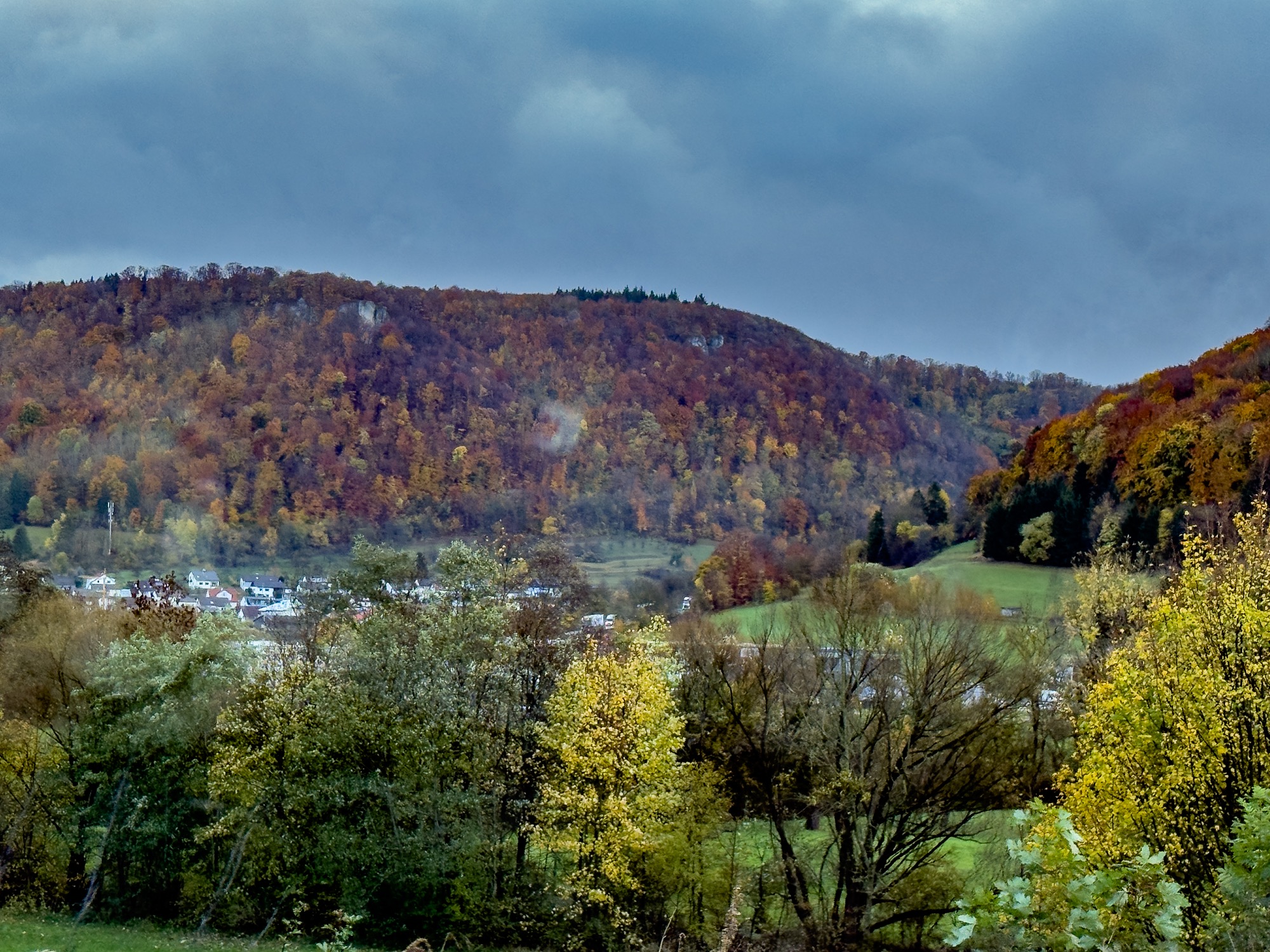 Um alle Wettervorhersagen getreulich zu erfüllen, trommelt der Regen die ganze Nacht aufs Dächle. Es wird Morgen, Maxl möchte sich die Bäume ansehen und so verhülle ich mich wasserdicht und wir wackeln los.