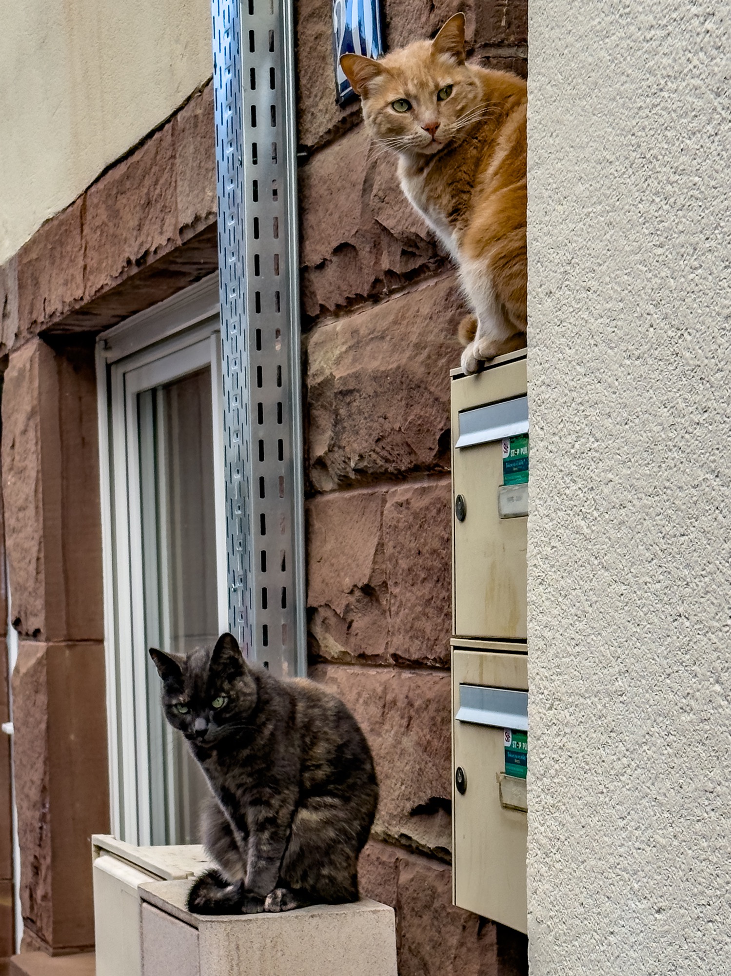 Auch Obernai liegt an der Weinstraße, aber im Gegensatz zu den beiden vorigen Orten haben wir es heute mit einer sehr touristischen Stadt zu tun. Ein Umstand, der nicht gerade Beifall bei unseren Fellnasen findet. Vor allem Maxl regt sich fürchterlich auf. Daher bringen wir die kleinen Monster auch schnell zurück ins Wohnmobil und machen uns dann noch einmal auf den Weg.