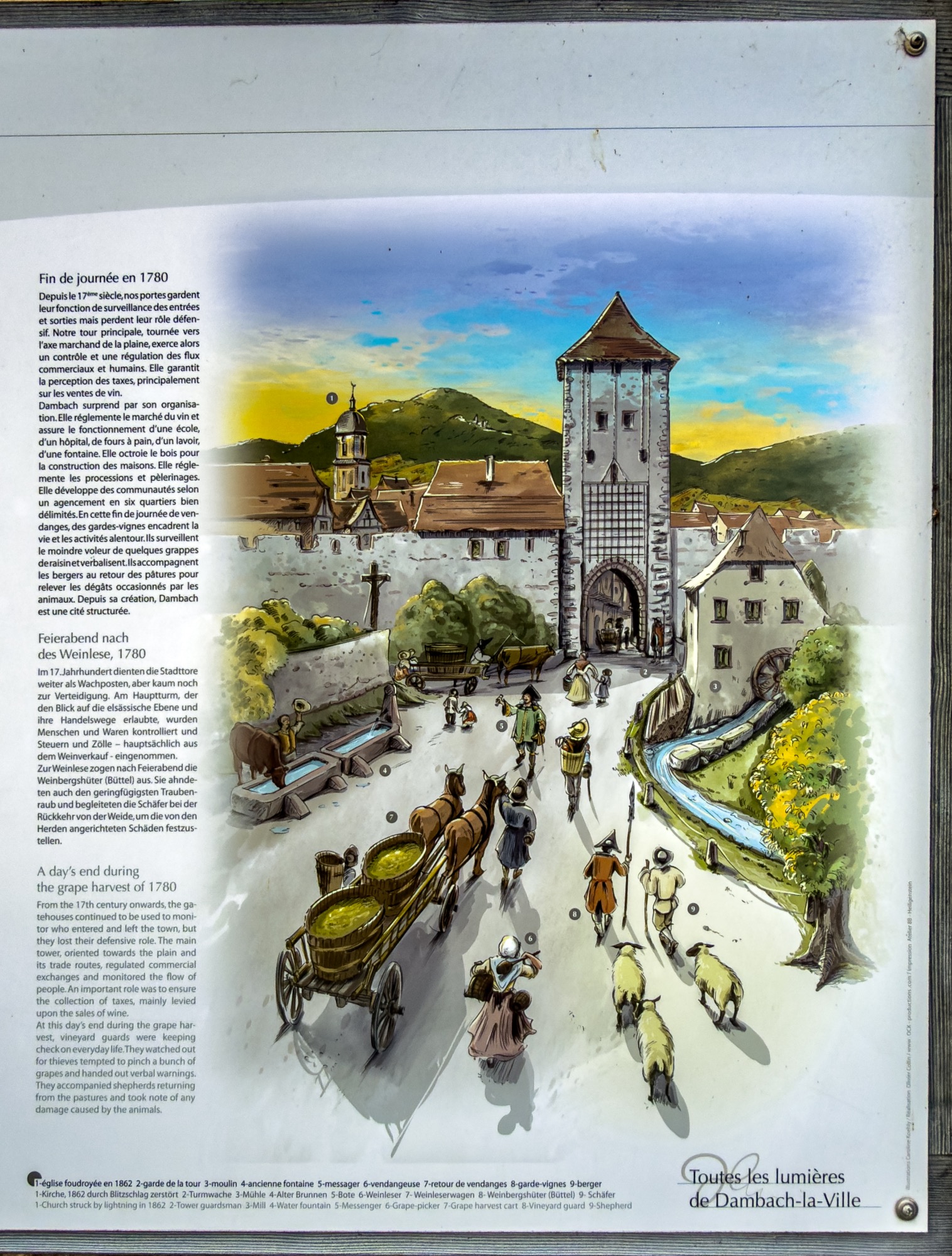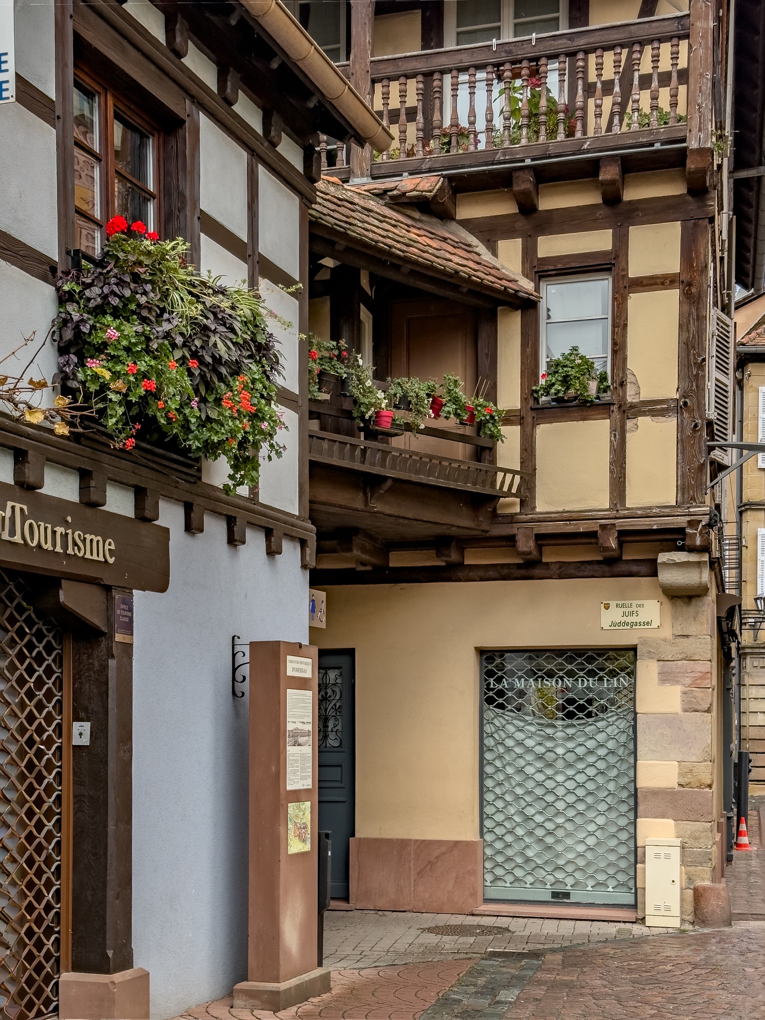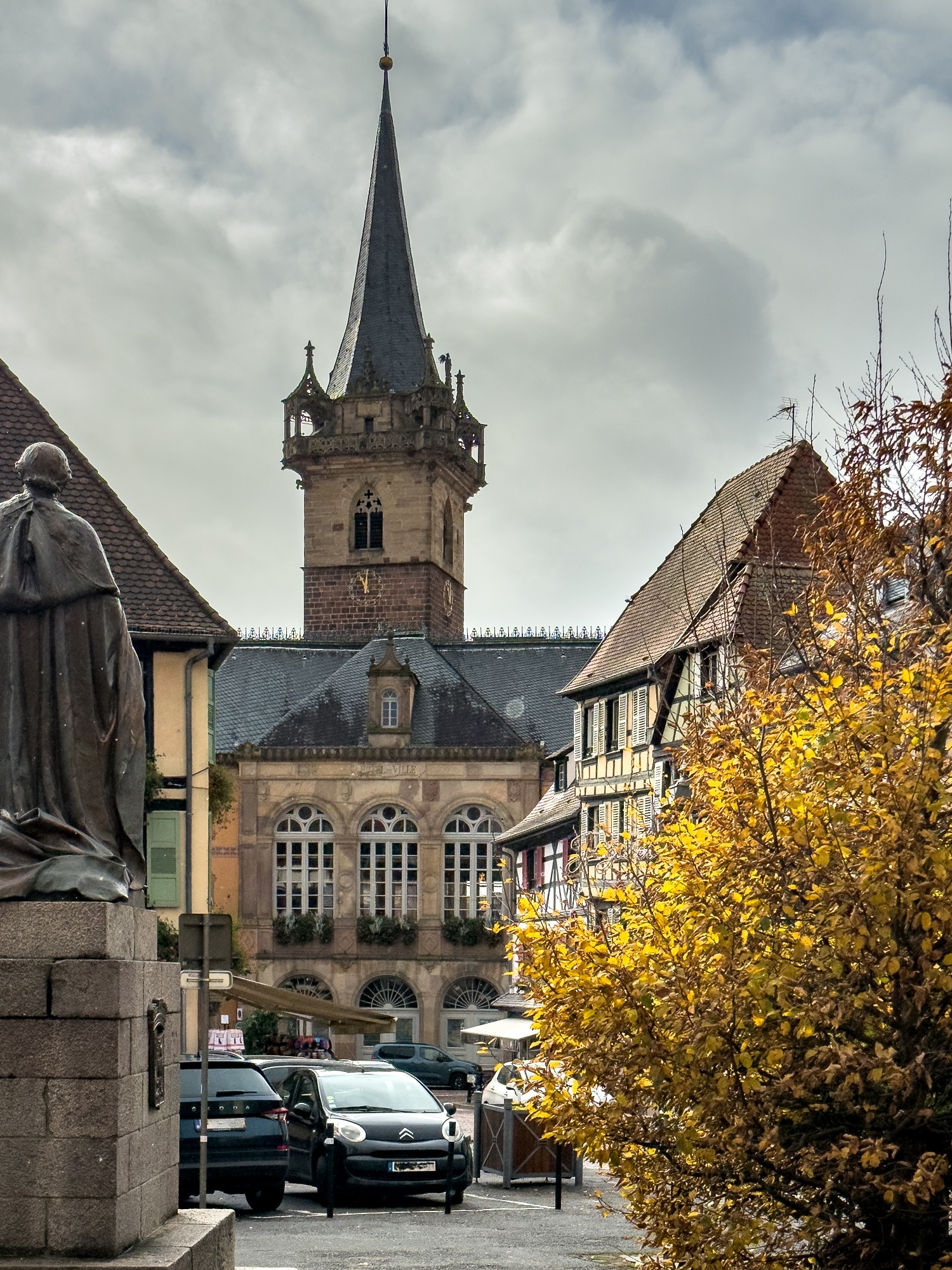 Dambach-la-Ville gehört zu den etwas weniger bekannten Dörfern im Elsass. Das malerische Winzerstädtchen liegt nördlich von Sélestat an der Weinstraße. Im Sommer verziert üppiger, schöner Blumenschmuck die Stadt und so verdankt Dambach-la-Ville mehrere Auszeichnungen in einem nationalen Wettbewerb. Selbst jetzt im Spätherbst blüht es hier und da noch und man kann sich die sommerliche Blüte gut vorstellen.