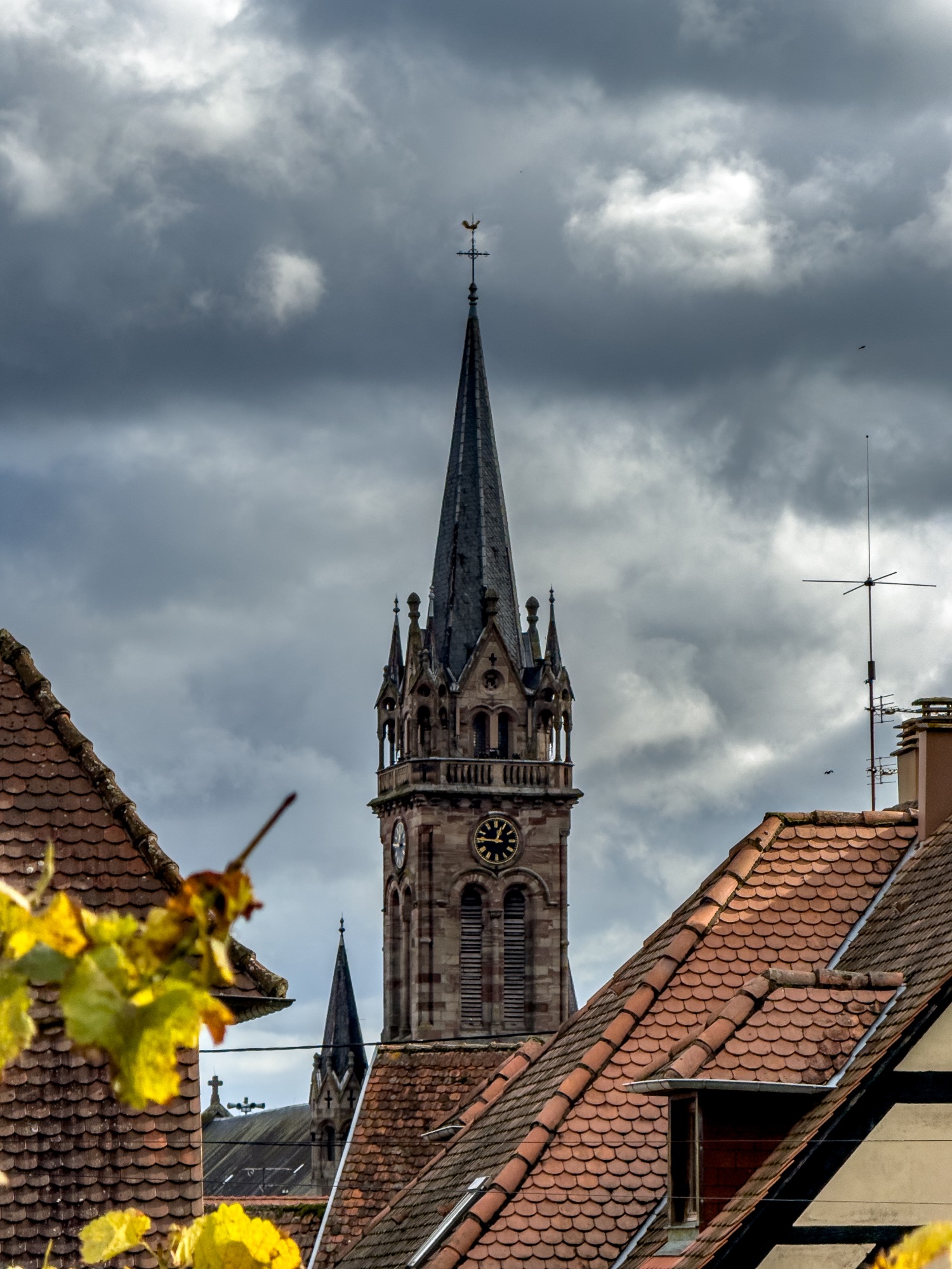 Mit seiner Höhe von 60 Metern ist der gotische Glockenturm der Kirche Saint-Georges de Sélestat eines der ersten sichtbaren Elemente, wenn man in Sélestat ankommt.