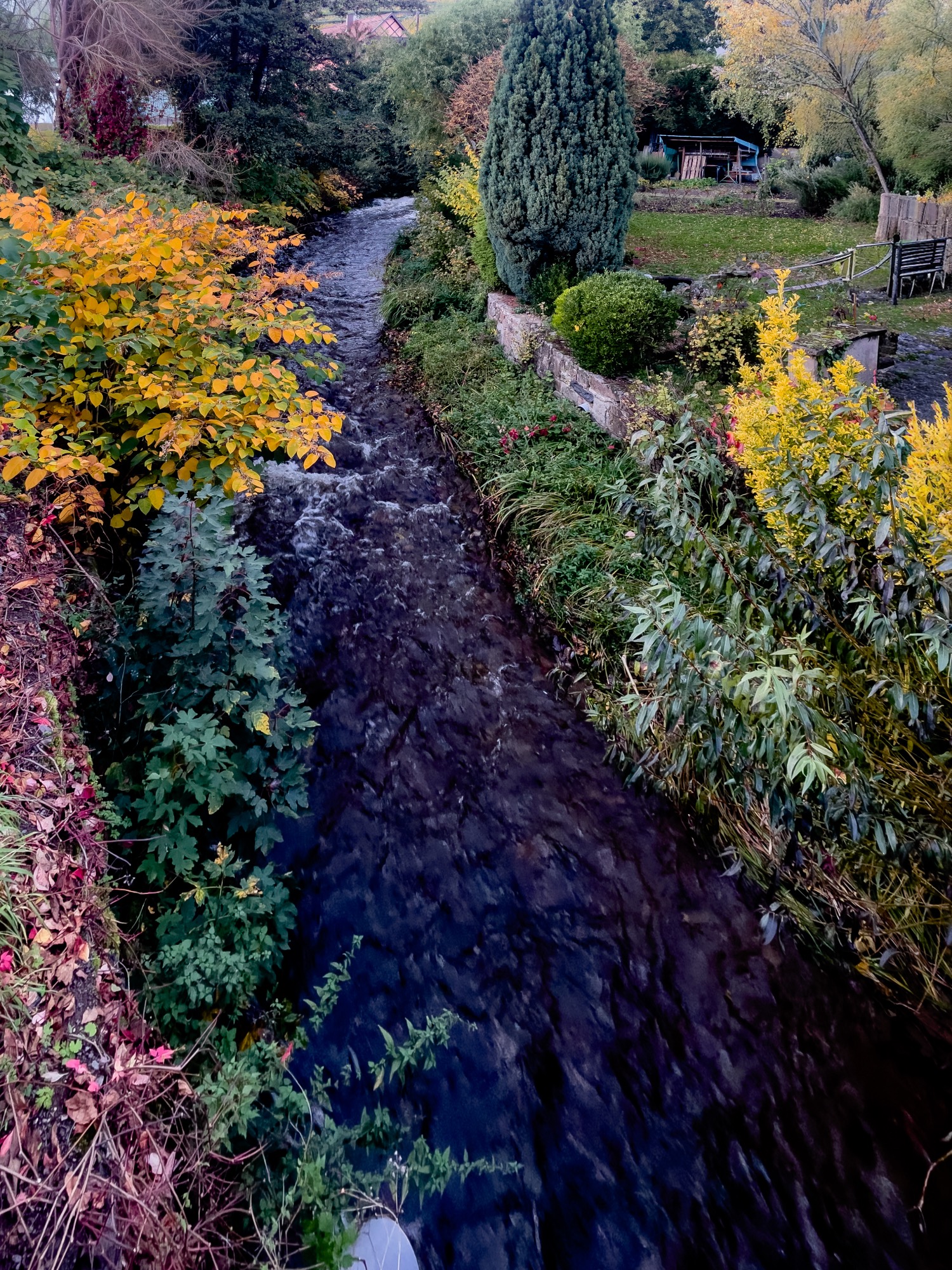 Schade, dass es soviel Baustellen gibt. Der kleine Ort ist wirklich sehenswert. Es gibt einen kleinen Wildbach, der sich über den einen oder anderen kleinen Wasserfall seinen Weg entlang des Ortes bahnt. Wir genießen unseren Ausflug auch heute wieder bei schönstem Sonnenschein, nachdem wir noch morgens der Meinung waren, die Welt würde hier und jetzt untergehen. Die Hunde, die überall angeleint bleiben müssen, werden merklich angespannter an der Leine. Maxl fällt wieder in die Angewohnheit zurück, Fußgänger und Radfahrer anzukläffen. Es fehlt das Auspowern, aber das ist in diesen kleinen Orten leider nicht möglich. Wir gehen noch einmal ohne die Fellnasen los.