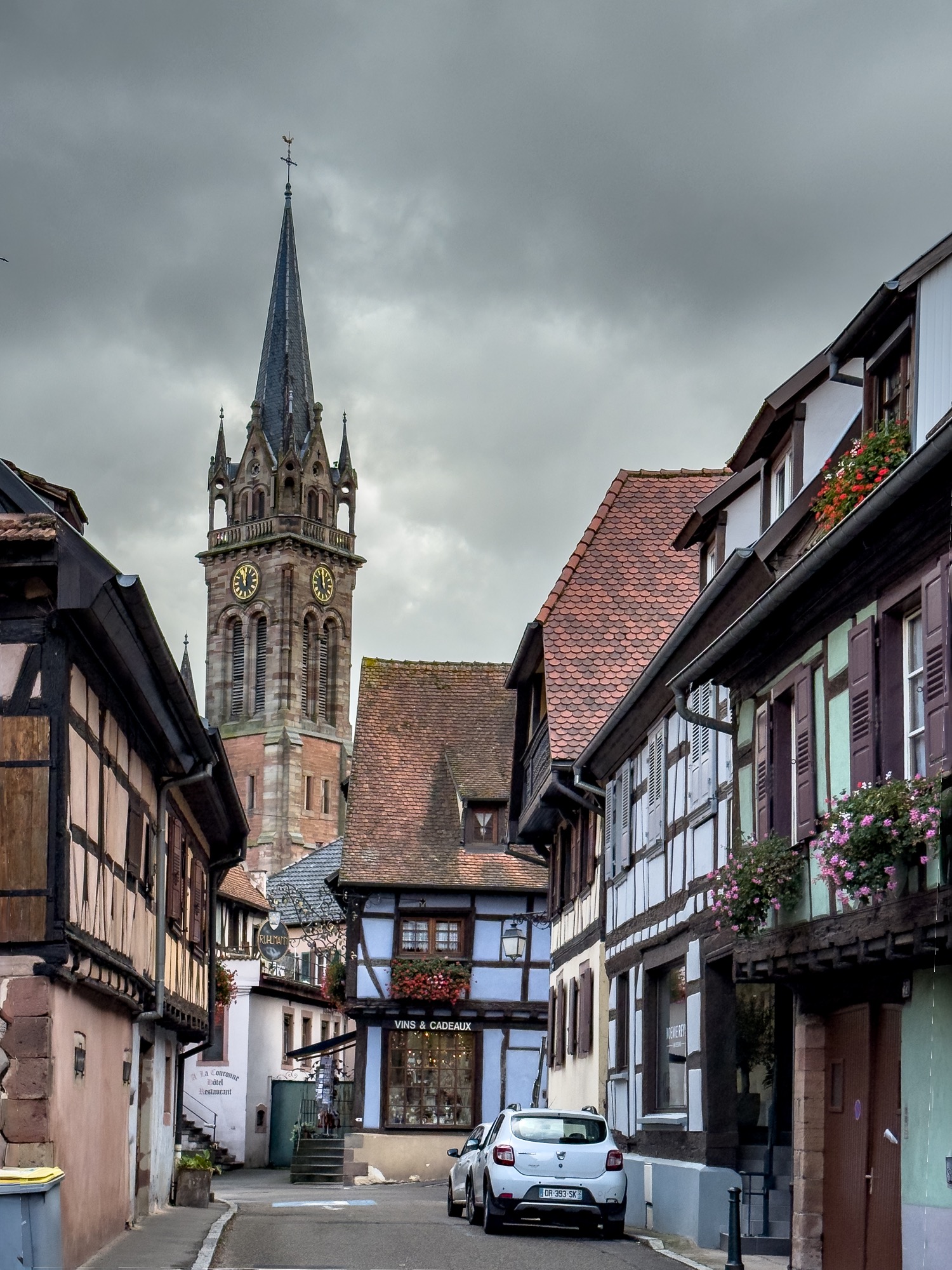 In der Nacht lauschen wir wieder dem Trommelfeuer des Regens und hoffen, dass das Wetter auch mit zunehmender Helligkeit wieder ein Einsehen hat. Und ja - es klart auf, die Sonne kommt durch und wir können uns heute Dambach-la-Ville ansehen.
