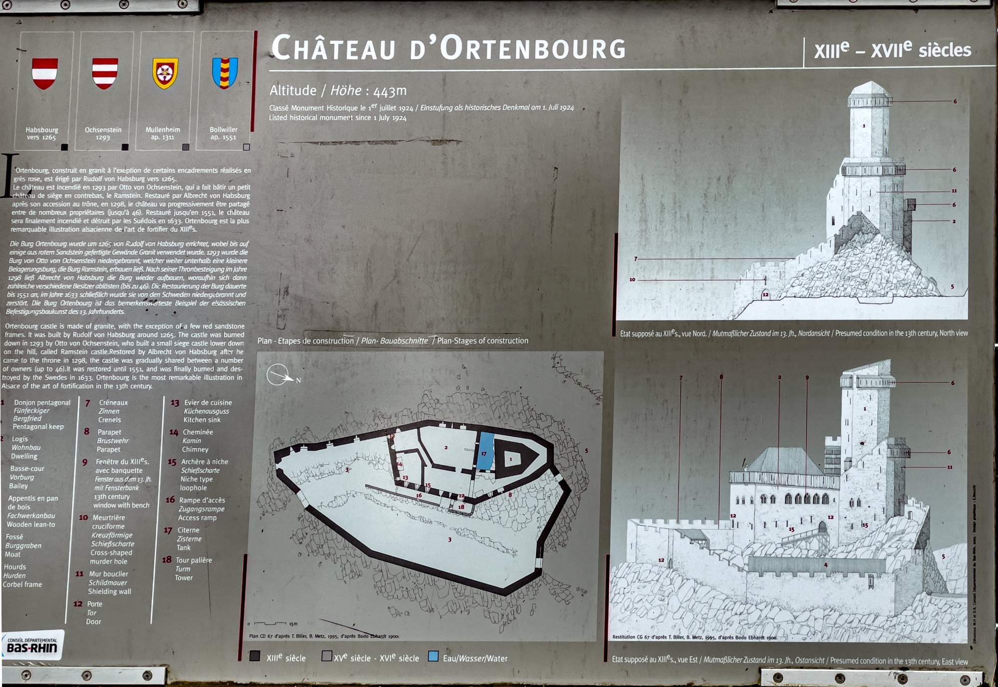 Die Burg wurde 1265 auf Initiative von Rudolf von Habsburg gegründet und befand sich noch im Bau, als sie zum ersten Mal von den Truppen des Straßburger Bischofs belagert wurde. Einige Jahre später wurde in der Nähe die Burg Ramstein errichtet. Die Burg Ortenberg wurde ausgehungert und fiel schließlich. Um 1300 wurde sie wieder aufgebaut, jedoch 1632 im Dreißigjährigen Krieg von den Schweden geplündert und niedergebrannt.